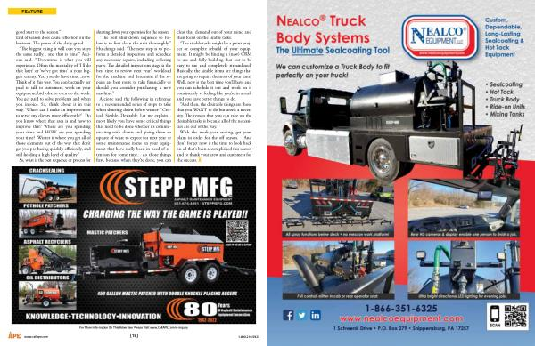 good start to the season .” End of season does cause reflection on the business . The pause of the daily grind . “ The biggest thing it will cost you stays the same really ... and that is time ,” Ascione said . “’ Downtime is what you will experience . Often the mentality of ‘ I ’ ll do that later ’ or ‘ we ’ ve got time ’ is your biggest enemy . Yes , you do have time ... now . Think of it this way . You don ’ t actually get paid to talk to customers , work on your equipment , bid jobs , or even do the work . You get paid to solve problems and when you invoice . So , think about it in this way , ‘ Where can I make an improvement to serve my clients more efficiently ?’. Do you know where that area is and how to improve that ? Where are you spending your time and HOW are you spending your time ? Winter is where you get all of those elements out of the way that don ’ t get you producing quickly , efficiently , and still holding a high level of quality .” So , what is the best sequence or process for shutting down your operation for the season ? “ The best shut-down sequence to follow is to first clean the unit thoroughly ,” Hutchings said . “ The next step is to perform a detailed inspection and schedule any necessary repairs , including ordering parts . The detailed inspections stage is the best time to review next year ’ s workload for the machine and determine if the repairs are best route to take financially or should you consider purchasing a new machine .” Ascione said the following in reference to a recommended series of steps to take when shutting down before winter : “ Critical , Sizable , Desirable .
