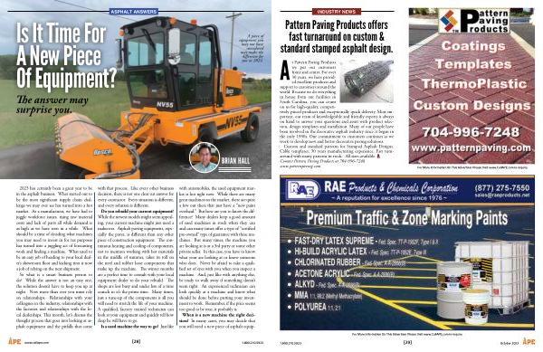 2023 has certainly been a great year to be in the asphalt business . What started out to be the most significant supply chain challenge we may ever see has turned into a hot market . As a manufacturer , we have had to juggle workforce issues , rising raw material costs and lack of parts all while demand is as high as we have seen in a while . What should be a time of deciding what machines you may need to invest in for tax purposes has turned into a juggling act of forecasting work and finding a machine . What used to be an easy job of heading to your local dealer ’ s showroom floor and kicking tires is now a job of relying on the next shipment . So what is a smart business person to do ? While the answer is not an easy one , the solution doesn ’ t have to keep you up at night . Now more than ever you must rely on relationships . Relationships with your colleagues in the industry , relationships with the factories and relationships with the local dealerships . This month , let ’ s discuss the thought process that goes into looking at asphalt equipment and the pitfalls that come with that process . Like every other business decision , there is not one clear cut answer for every contractor . Every situation is different , and every solution is different .