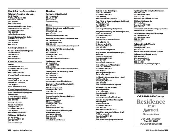 Hilton Minneapolis / Bloomington 3900 American Blvd. W. Bloomington, MN 55437( 952) 893-9500 www. bloomingtonhilton. com See our ad on page 78