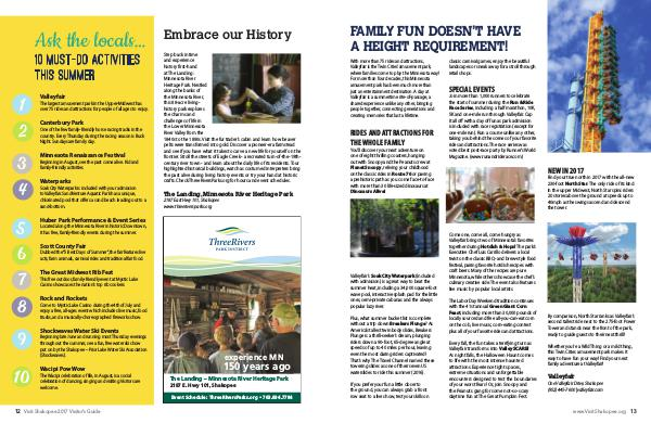 12 Visit Shakopee 2017 Visitor’ s Guide