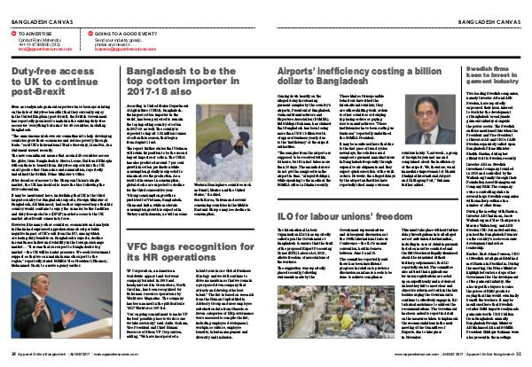 www. apparelresources. com | AUGUST 2017 | Apparel Online Bangladesh 35
