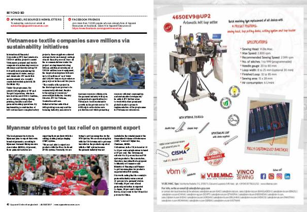 www.apparelresources.com | AUGUST 2017 | Apparel Online Bangladesh 41