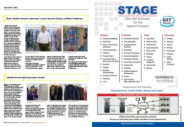 48 Apparel Online India | JULY 16-31, 2017 | www. apparelresources. com