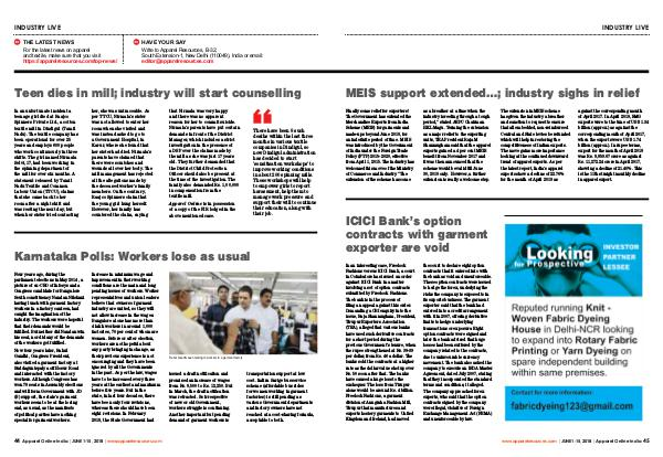 Increase in minimum wage and improvement in their working conditions are the main and long pending issues of workers. Worker representatives and union leaders believe that owners of garment industry are united, so they will not allow increase in the wages. Bangalore alone has more than 4 lakh workers in around 1,000 factories, 70 per cent of whom are women. Before or after election, workers are not hopeful about any party bringing in change, as their previous experience is not encouraging and they have been ignored by all the Governments in the past. As per the law, wages have to be increased every three years at the earliest and maximum before five years. But in the state, in last four decades, there have been only four revisions, whereas there should have been eight revisions. In February 2018, the State Government had |