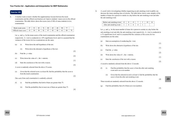 1. A teacher wants to know whether the supplementary lessons between the mock