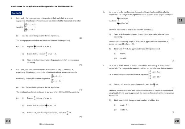Euler ’ s method with a step length of 0.2 is used to approximate the populations of leopard and crocodile when t � 0.2 .