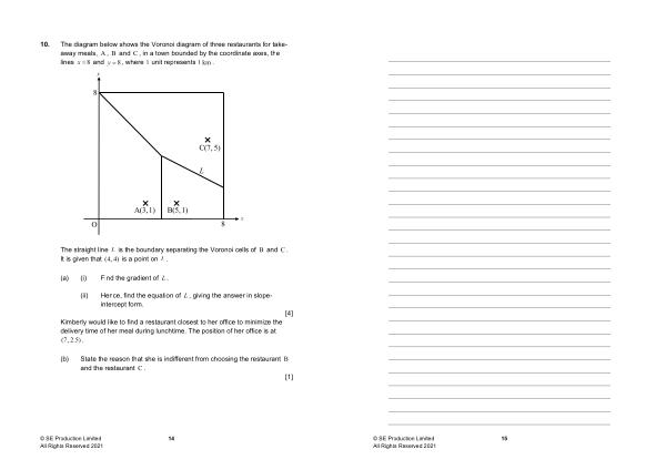 10 . The diagram below shows the Voronoi diagram of three restaurants for takeaway meals , A , B and C , in a town bounded by the coordinate axes , the lines x � 8 and y � 8 , where 1 unit represents 1 km .