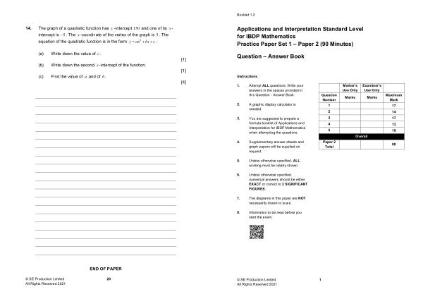 You are suggested to prepare a formula booklet of Applications and Interpretation for IBDP Mathematics when attempting the questions .