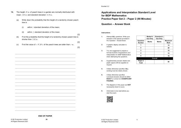 You are suggested to prepare a formula booklet of Applications and Interpretation for IBDP Mathematics when attempting the questions .