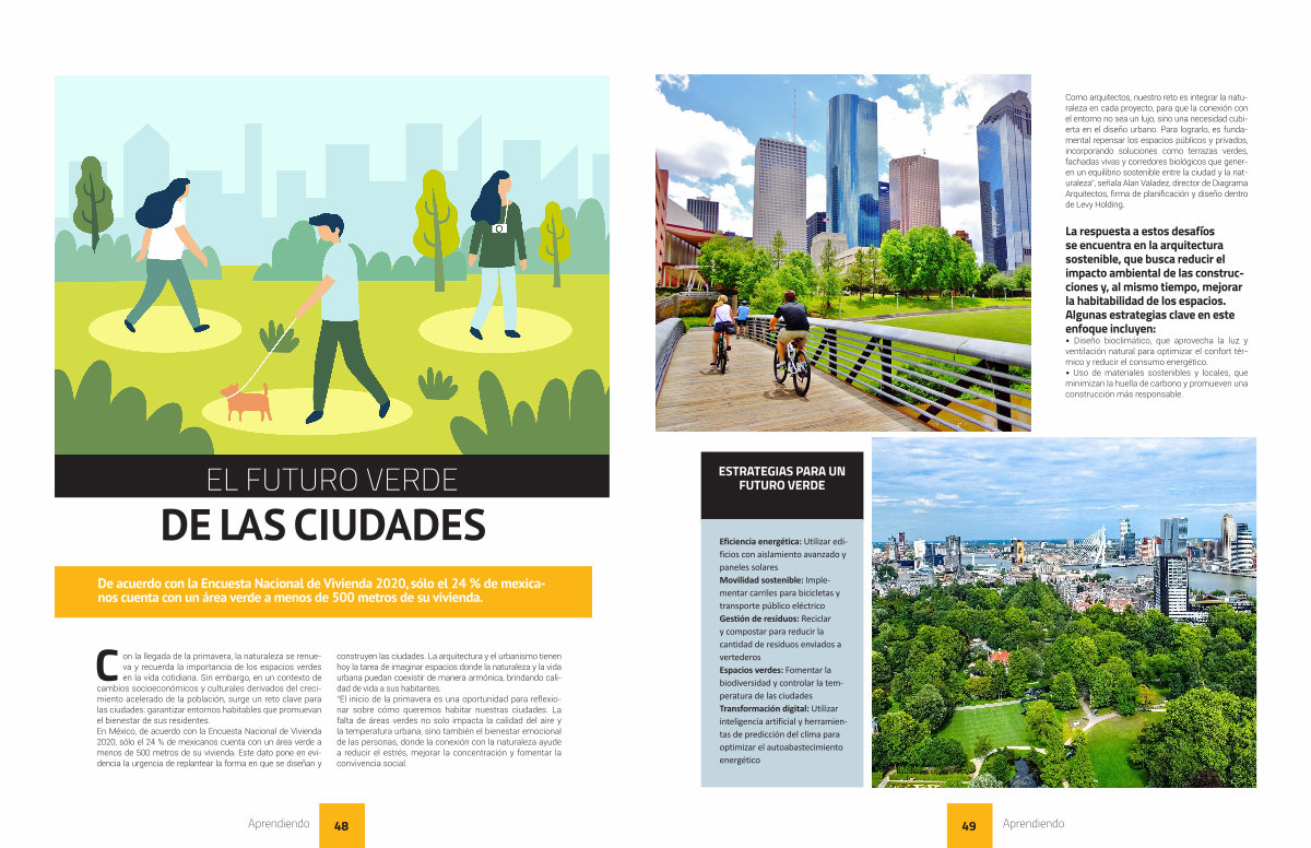 Con la llegada de la primavera, la naturaleza se renueva y recuerda la importancia de los espacios verdes en la vida cotidiana. Sin embargo, en un contexto de cambios socioeconómicos y culturales derivados del crecimiento acelerado de la población, surge un reto clave para las ciudades: garantizar entornos habitables que promuevan el bienestar de sus residentes. En México, de acuerdo con la Encuesta Nacional de Vivienda 2020, sólo el 24 % de mexicanos cuenta con un área verde a menos de 500 metros de su vivienda. Este dato pone en evidencia la urgencia de replantear la forma en que se diseñan y construyen las ciudades. La arquitectura y el urbanismo tienen hoy la tarea de imaginar espacios donde la naturaleza y la vida urbana puedan coexistir de manera armónica, brindando calidad de vida a sus habitantes.“ El inicio de la primavera es una oportunidad para reflexionar sobre cómo queremos habitar nuestras ciudades. La falta de áreas verdes no solo impacta la calidad del aire y la temperatura urbana, sino también el bienestar emocional de las personas, donde la conexión con la naturaleza ayude a reducir el estrés, mejorar la concentración y fomentar la convivencia social.