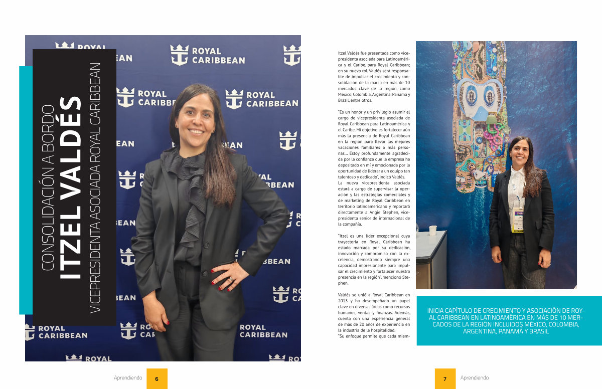 “ Es un honor y un privilegio asumir el cargo de vicepresidenta asociada de Royal Caribbean para Latinoamérica y el Caribe. Mi objetivo es fortalecer aún más la presencia de Royal Caribbean en la región para llevar las mejores vacaciones familiares a más personas … Estoy profundamente agradecida por la confianza que la empresa ha depositado en mí y emocionada por la oportunidad de liderar a un equipo tan talentoso y dedicado”, indicó Valdés. La nueva vicepresidenta asociada estará a cargo de supervisar la operación y las estrategias comerciales y de marketing de Royal Caribbean en territorio latinoamericano y reportará directamente a Angie Stephen, vicepresidenta senior de internacional de la compañía.