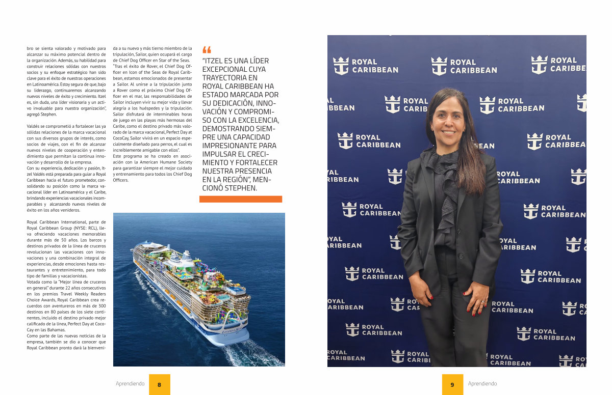 “ ITZEL ES UNA LÍDER EXCEPCIONAL CUYA TRAYECTORIA EN ROYAL CARIBBEAN HA ESTADO MARCADA POR SU DEDICACIÓN, INNO- VACIÓN Y COMPROMI- SO CON LA EXCELENCIA, DEMOSTRANDO SIEM- PRE UNA CAPACIDAD IMPRESIONANTE PARA IMPULSAR EL CRECI- MIENTO Y FORTALECER NUESTRA PRESENCIA EN LA REGIÓN”, MEN- CIONÓ STEPHEN.