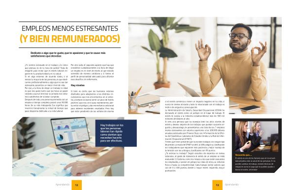 si el estrés comienza a tener un impacto negativo en tu vida , si nunca te sientes aliviado y todo lo relacionado con el trabajo es motivo de angustia y preocupación . La Administración de Salud y Seguridad Ocupacional ( OSHA ) ha declarado al estrés como un peligro en el lugar de trabajo . El estrés le cuesta a la industria estadounidense más de 300 mil millones de dólares al año . Si eres una persona que no manejas bien los altos niveles de estrés y deseas alejarte de los trabajos que puedan causarte angustia y desasosiego , te presentamos una lista de los 7 empleos menos estresantes con salarios superiores a los 100.000 dólares anuales publicados por Finance Buzz , con información de la Oficina de Estadísticas Laborales de Estados Unidos y la Red de Información Ocupacional ( O * NET ). Tienes que tener presente que no existen trabajos sin ningún tipo de presión . La escala de O * NET va del 1 al 100 y según su clasificación los trabajadores que requieren más paciencia y mejor manejo de la tensión son los urólogos , clasificados con 99 puntos . ¿ Te estresa tu trabajo ? Según estudios de expertos en temas laborales , el grado de tolerancia al estrés de un empleo se mide evaluando 11 factores , como los riesgos a los que están expuestos los empleados , si ponen en peligro las vidas de otros , su esfuerzo físico y hasta su competitividad . Cada trabajo recibe valores que van de 0 a 100 puntos , donde a mayor estrés requerido , mayor puntuación .