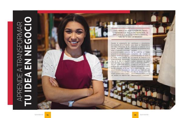 Durante la presentación de los resultados de la 6 ª edición del Índice Citibanamex de Inclusión Financiera , Citibanamex y Condusef presentaron el Curso de Emprendimiento se presentó el curso gratuito para impulsar modelos de negocio . El nuevo curso gratuito de emprendimiento , denominado “ Haz de tu idea un negocio ”, es el resultado de un proyecto más de colaboración entre la Comisión Nacional para la Protección y Defensa de los Usuarios ( Condusef ), y Citibanamex , el cual permitirá a las y los interesados generar ideas e impulsar modelos de negocios que contribuyan a concretizarlas para lograr su independencia financiera y coadyuvar en la resolución de problemas en la sociedad . No se trata de un simple compendio de recetas y recomendaciones en torno a la creación de negocios y la formalización de micro o pequeñas empresas es , sobre todo , un desarrollo académico y didáctico que brinda información y promueve al análisis y la proactividad del interesado , para que logre aterrizar su idea de negocio , pero con una mirada en el futuro , con la idea de perdurar y trascender