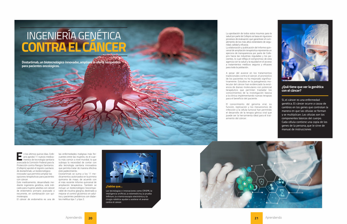 En los últimos quince días , Cofepris aprobó 11 nuevos medicamentos de tecnología sanitaria avanzada la Comisión Federal para la Protección contra Riesgos Sanitarios ( Cofepris ) aprobó el registro sanitario de dostarlimab , un biotecnológico innovador que permitirá ampliar las opciones terapéuticas para pacientes con cáncer . Este medicamento , desarrollado mediante ingeniería genética , está indicado para mujeres adultas con cáncer de endometrio primario avanzado o recurrente , en combinación con quimioterapia . El cáncer de endometrio es una de las enfermedades malignas más frecuentes entre las mujeres ; es el cuarto más común a nivel mundial , lo que subraya la necesidad de contar con alta tecnología sanitaria innovadora que permita tratar de manera efectiva este padecimiento . Dostarlimab se suma a los 11 medicamentos autorizados en la primera quincena de mayo , de acuerdo con el más reciente Informe quincenal de ampliación terapéutica . También se incluye un biotecnológico biocomparable de insulina glargina , destinado a mejorar el control glucémico en adultos y pacientes pediátricos con diabetes mellitus tipo 1 y tipo 2 .