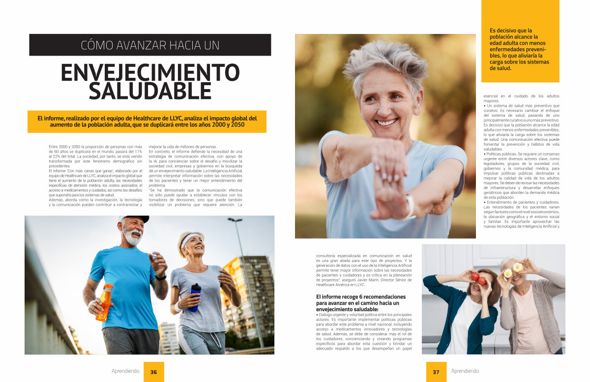 Entre 2000 y 2050 la proporción de personas con más de 60 años se duplicará en el mundo , pasará del 11 % al 22 % del total . La sociedad , por tanto , se está viendo transformada por este fenómeno demográfico sin precedentes . El informe ‘ Con más canas que ganas ’, elaborado por el equipo de Healthcare de LLYC , analiza el impacto global que tiene el aumento de la población adulta , las necesidades específicas de atención médica , los costos asociados , el acceso a medicamentos y cuidados , así como los desafíos que supondrá para los sistemas de salud . Además , aborda cómo la investigación , la tecnología y la comunicación pueden contribuir a contrarrestar y mejorar la vida de millones de personas . En concreto , el informe defiende la necesidad de una estrategia de comunicación efectiva , con apoyo de la IA , para concienciar sobre el desafío y movilizar la sociedad civil , empresas y gobiernos en la búsqueda de un envejecimiento saludable . La Inteligencia Artificial permite interpretar información sobre las necesidades de los pacientes y tener un mejor entendimiento del problema . “ Se ha demostrado que la comunicación efectiva no sólo puede ayudar a establecer vínculos con los tomadores de decisiones , sino que puede también visibilizar un problema que requiere atención . La