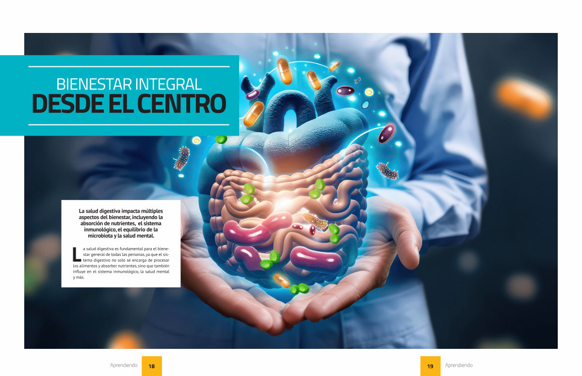 La salud digestiva impacta múltiples aspectos del bienestar, incluyendo la absorción de nutrientes, el sistema inmunológico, el equilibrio de la microbiota y la salud mental.