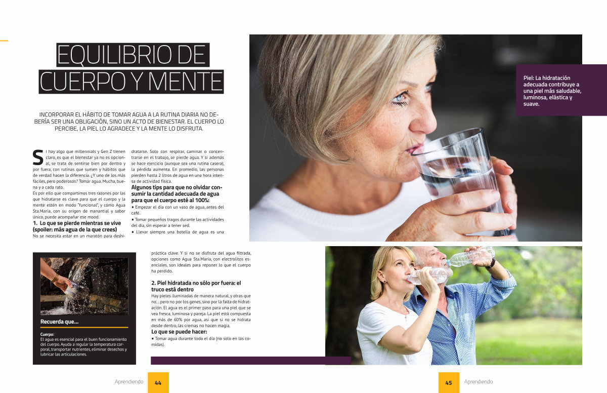 Piel: La hidratación adecuada contribuye a una piel más saludable, luminosa, elástica y suave.