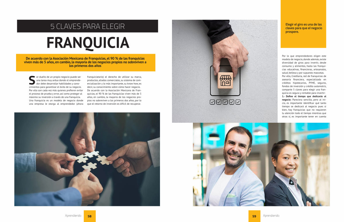 De acuerdo con la Asociación Mexicana de Franquicias, el 90 % de las franquicias viven más de 5 años, en cambio, la mayoría de los negocios propios no sobreviven a los primeros dos años
