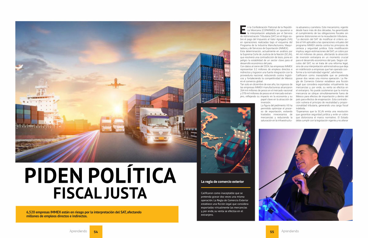 6,520 empresas IMMEX están en riesgo por la interpretación del SAT , afectando millones de empleos directos e indirectos .