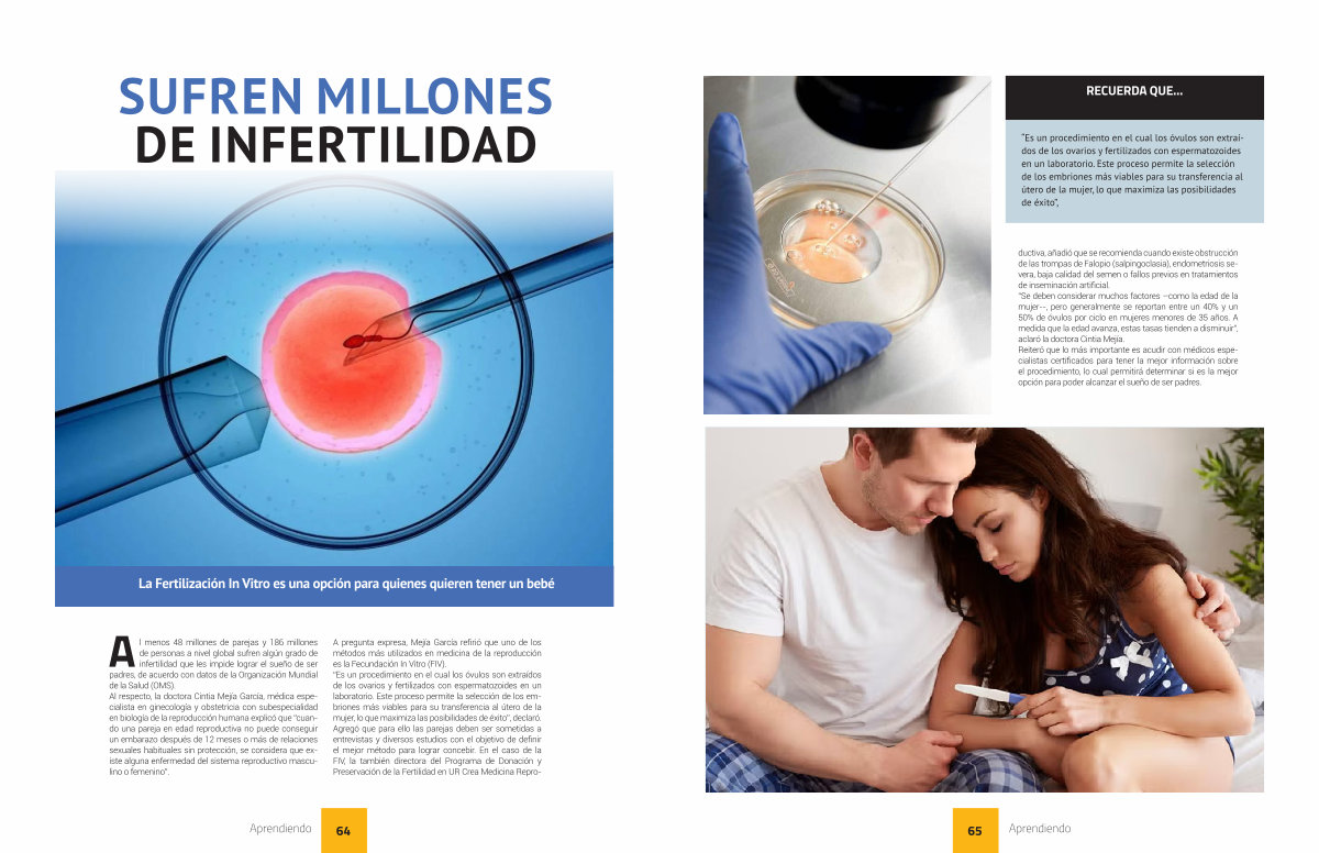 Al menos 48 millones de parejas y 186 millones de personas a nivel global sufren algún grado de infertilidad que les impide lograr el sueño de ser padres , de acuerdo con datos de la Organización Mundial de la Salud ( OMS ). Al respecto , la doctora Cintia Mejía García , médica especialista en ginecología y obstetricia con subespecialidad en biología de la reproducción humana explicó que “ cuando una pareja en edad reproductiva no puede conseguir un embarazo después de 12 meses o más de relaciones sexuales habituales sin protección , se considera que existe alguna enfermedad del sistema reproductivo masculino o femenino ”.