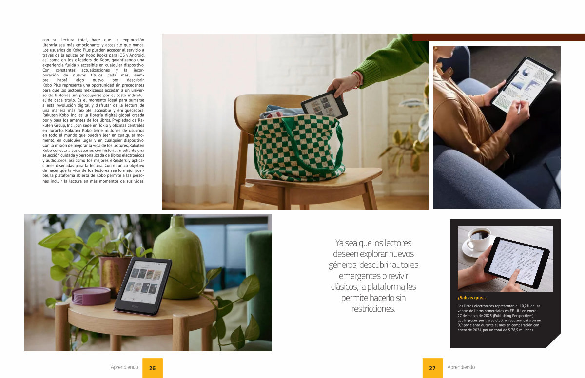 con su lectura total, hace que la exploración literaria sea más emocionante y accesible que nunca. Los usuarios de Kobo Plus pueden acceder al servicio a través de la aplicación Kobo Books para iOS y Android, así como en los eReaders de Kobo, garantizando una experiencia fluida y accesible en cualquier dispositivo. Con constantes actualizaciones y la incorporación de nuevos títulos cada mes, siempre habrá algo nuevo por descubrir. Kobo Plus representa una oportunidad sin precedentes para que los lectores mexicanos accedan a un universo de historias sin preocuparse por el costo individual de cada título. Es el momento ideal para sumarse a esta revolución digital y disfrutar de la lectura de una manera más flexible, accesible y enriquecedora. Rakuten Kobo Inc. es la librería digital global creada por y para los amantes de los libros. Propiedad de Rakuten Group, Inc., con sede en Tokio y oficinas centrales en Toronto, Rakuten Kobo tiene millones de usuarios en todo el mundo que pueden leer en cualquier momento, en cualquier lugar y en cualquier dispositivo. Con la misión de mejorar la vida de los lectores, Rakuten Kobo conecta a sus usuarios con historias mediante una selección cuidada y personalizada de libros electrónicos y audiolibros, así como los mejores eReaders y aplicaciones diseñadas para la lectura. Con el único objetivo de hacer que la vida de los lectores sea lo mejor posible, la plataforma abierta de Kobo permite a las personas incluir la lectura en más momentos de sus vidas.
