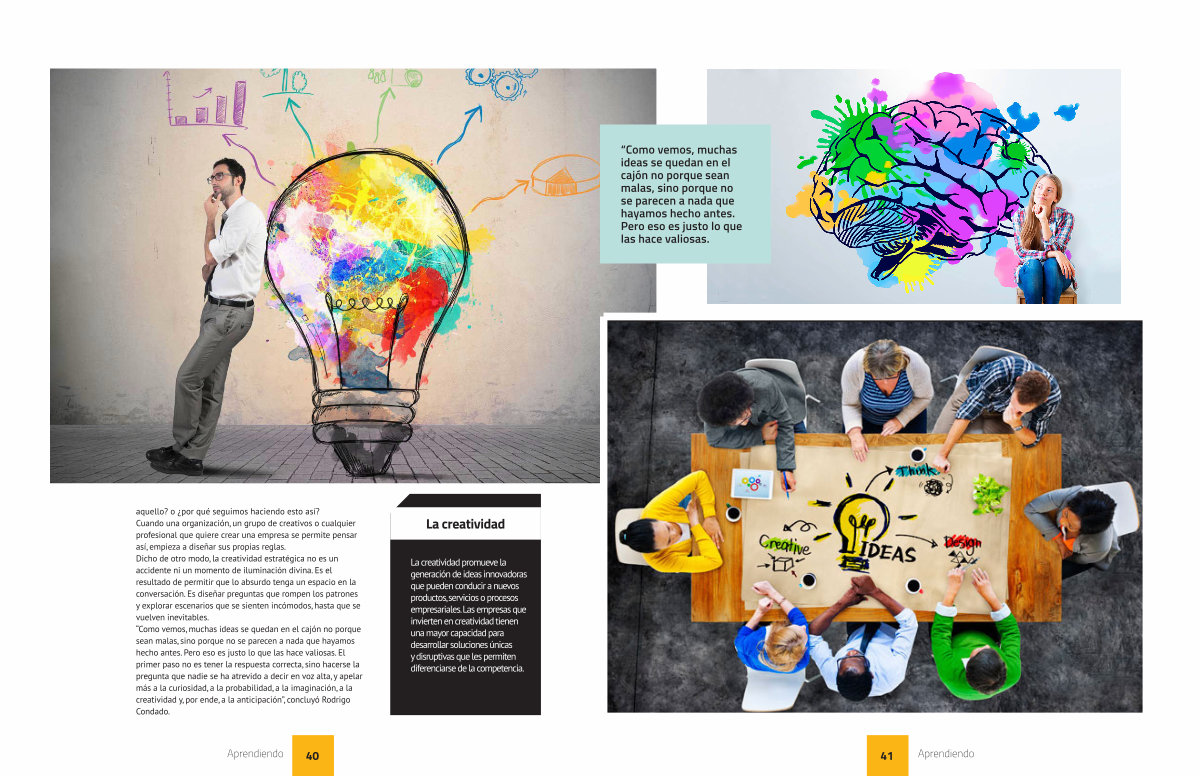 aquello? o ¿ por qué seguimos haciendo esto así? Cuando una organización, un grupo de creativos o cualquier profesional que quiere crear una empresa se permite pensar así, empieza a diseñar sus propias reglas. Dicho de otro modo, la creatividad estratégica no es un accidente ni un momento de iluminación divina. Es el resultado de permitir que lo absurdo tenga un espacio en la conversación. Es diseñar preguntas que rompen los patrones y explorar escenarios que se sienten incómodos, hasta que se vuelven inevitables.“ Como vemos, muchas ideas se quedan en el cajón no porque sean malas, sino porque no se parecen a nada que hayamos hecho antes. Pero eso es justo lo que las hace valiosas. El primer paso no es tener la respuesta correcta, sino hacerse la pregunta que nadie se ha atrevido a decir en voz alta, y apelar más a la curiosidad, a la probabilidad, a la imaginación, a la creatividad y, por ende, a la anticipación”, concluyó Rodrigo Condado.