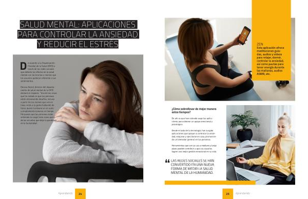 Desde el lado de la tecnología , han surgido aplicaciones que apoyan a controlar la ansiedad , relajarse y ejercitarse en casa , promoviendo un bienestar general en las personas .