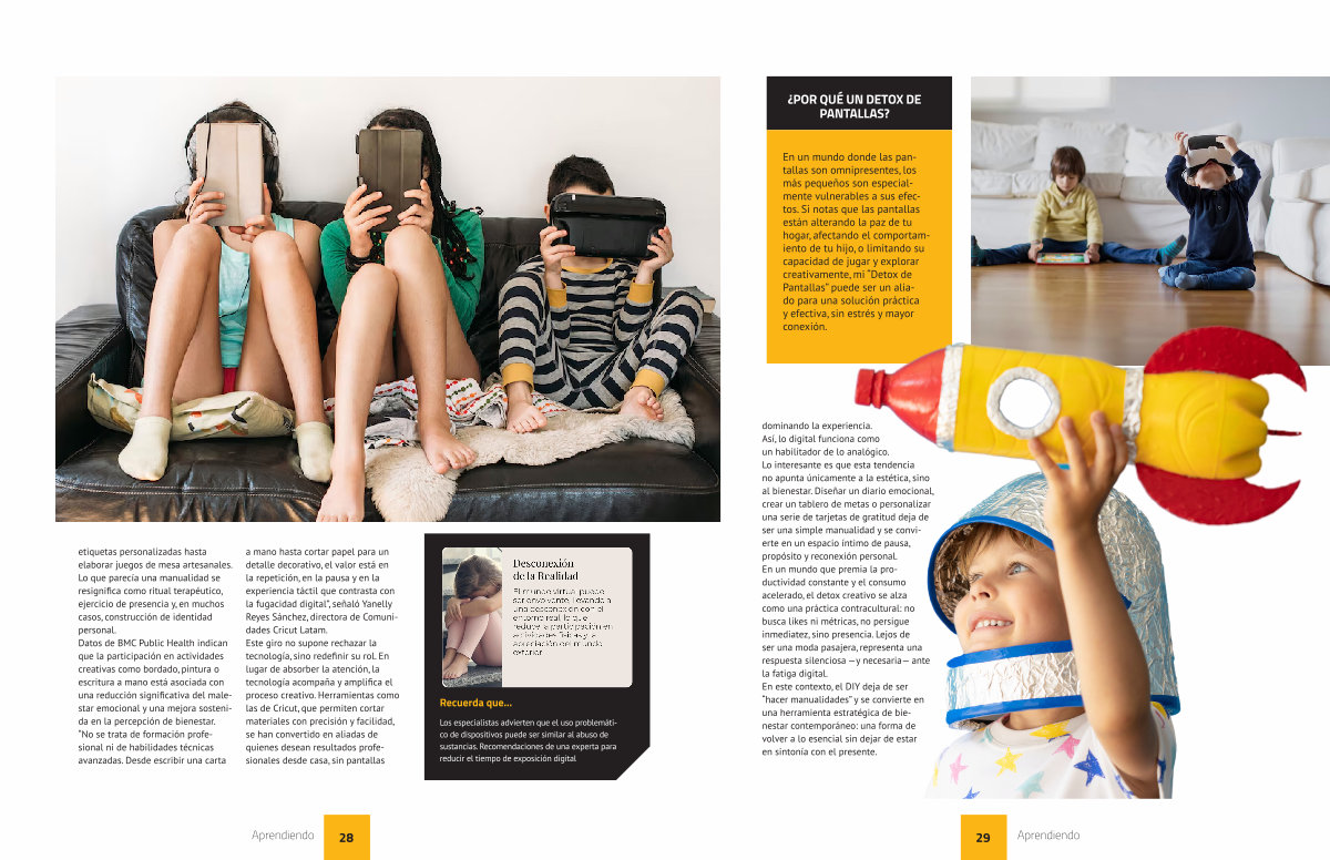 etiquetas personalizadas hasta elaborar juegos de mesa artesanales. Lo que parecía una manualidad se resignifica como ritual terapéutico, ejercicio de presencia y, en muchos casos, construcción de identidad personal. Datos de BMC Public Health indican que la participación en actividades creativas como bordado, pintura o escritura a mano está asociada con una reducción significativa del malestar emocional y una mejora sostenida en la percepción de bienestar.“ No se trata de formación profesional ni de habilidades técnicas avanzadas. Desde escribir una carta a mano hasta cortar papel para un detalle decorativo, el valor está en la repetición, en la pausa y en la experiencia táctil que contrasta con la fugacidad digital”, señaló Yanelly Reyes Sánchez, directora de Comunidades Cricut Latam. Este giro no supone rechazar la tecnología, sino redefinir su rol. En lugar de absorber la atención, la tecnología acompaña y amplifica el proceso creativo. Herramientas como las de Cricut, que permiten cortar materiales con precisión y facilidad, se han convertido en aliadas de quienes desean resultados profesionales desde casa, sin pantallas