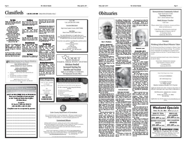 Page 18 The Colebrook Chronicle Friday, April 14, 2017