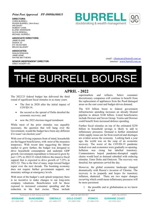 APRIL - 2022 supermarkets and refiners . Select consumer discretionary companies will continue to benefit from the replacement of appliances from the flood damaged areas on the east coast and budget-driven demand .