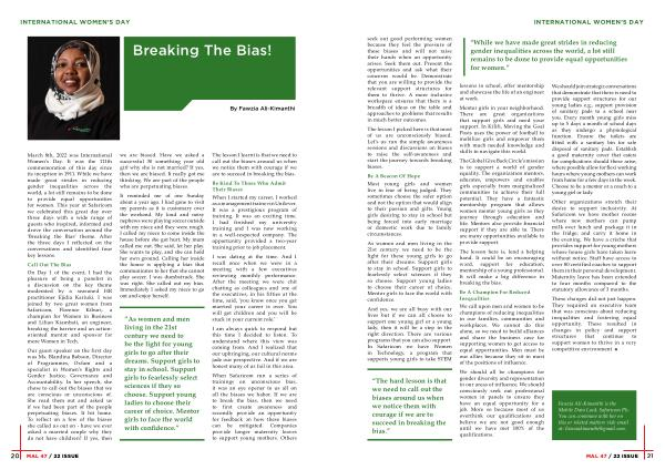 As women and men living in the 21st century we need to be the light for these young girls to go after their dreams . Support girls to stay in school . Support girls to fearlessly select sciences if they so choose . Support young ladies to choose their career of choice . Mentor girls to face the world with confidence .
