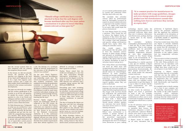 Dr . Joan Mutua begins by posing a question : ‘ Why would one toil to achieve the highest levels of education if they know that their qualifications have an expiry date ? As a scholar I feel only technical and specific college certifications should have expiry dates thus calling for refresher courses .
