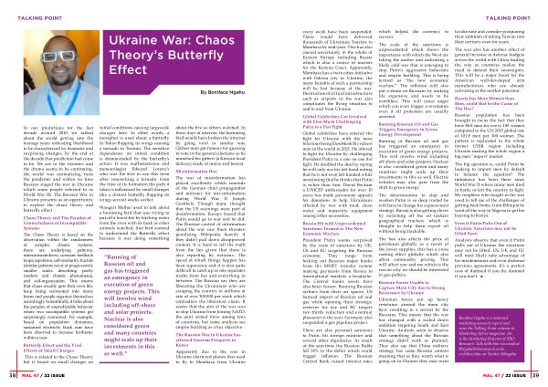TALKING POINT every week have been suspended . These would have delivered thousands of Ukrainian Tourists to Mombasa by mid-year . This has also caused uncertainty in the whole of Eastern Europe including Russia which is also a source of tourists for the Kenyan Coast . Apparently , Mombasa has a twin cities initiative with Odessa city in Ukraine , the many benefits of such a partnership will be lost because of the war . Destruction of critical infrastructure such as airports in the war also complicates the flying situation to and to and from Ukraine .