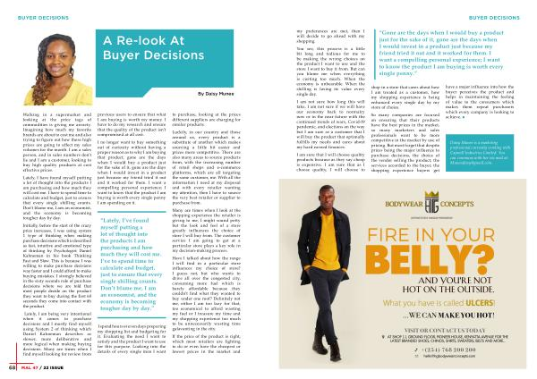 Lately , I have found myself putting a lot of thought into the products I am purchasing and how much they will cost me . I have to spend time to calculate and budget , just to ensure that every single shilling counts . Don ’ t blame me , I am an economist , and the economy is becoming tougher day by day .