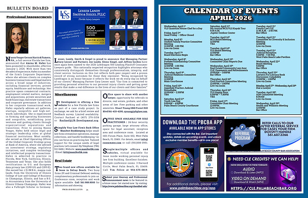 Announcement news to be featured in a future issue. Get started now by visiting: https:// www. palmbeachbar. org / classified-ads /