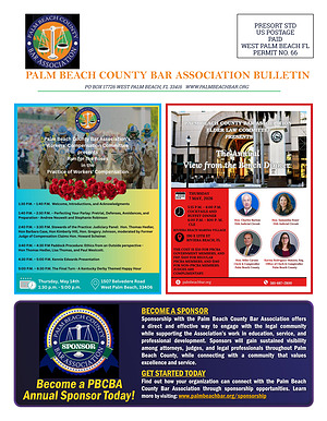 Sponsorship with the Palm Beach County Bar Association offers a direct and effective way to engage with the legal community while supporting the Association’ s work in education, service, and professional development. Sponsors will gain sustained visibility among attorneys, judges, and legal professionals throughout Palm Beach County, while connecting with a community that values excellence and service.