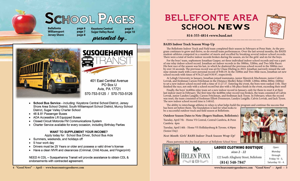 Next Month: Girls ' BAHS Indoor Track Season Wrap-Up! Please patronize this fine local sponsor of Bellefonte School News: