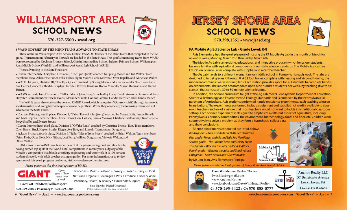 Please patronize this fine local sponsor of Jersey Shore Area School Dstrict: