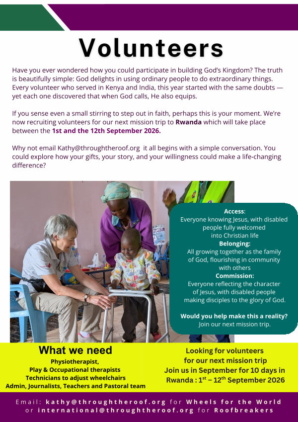 What we need Physiotherapist, Play & Occupational therapists Technicians to adjust wheelchairs Admin, Journalists, Teachers and Pastoral team