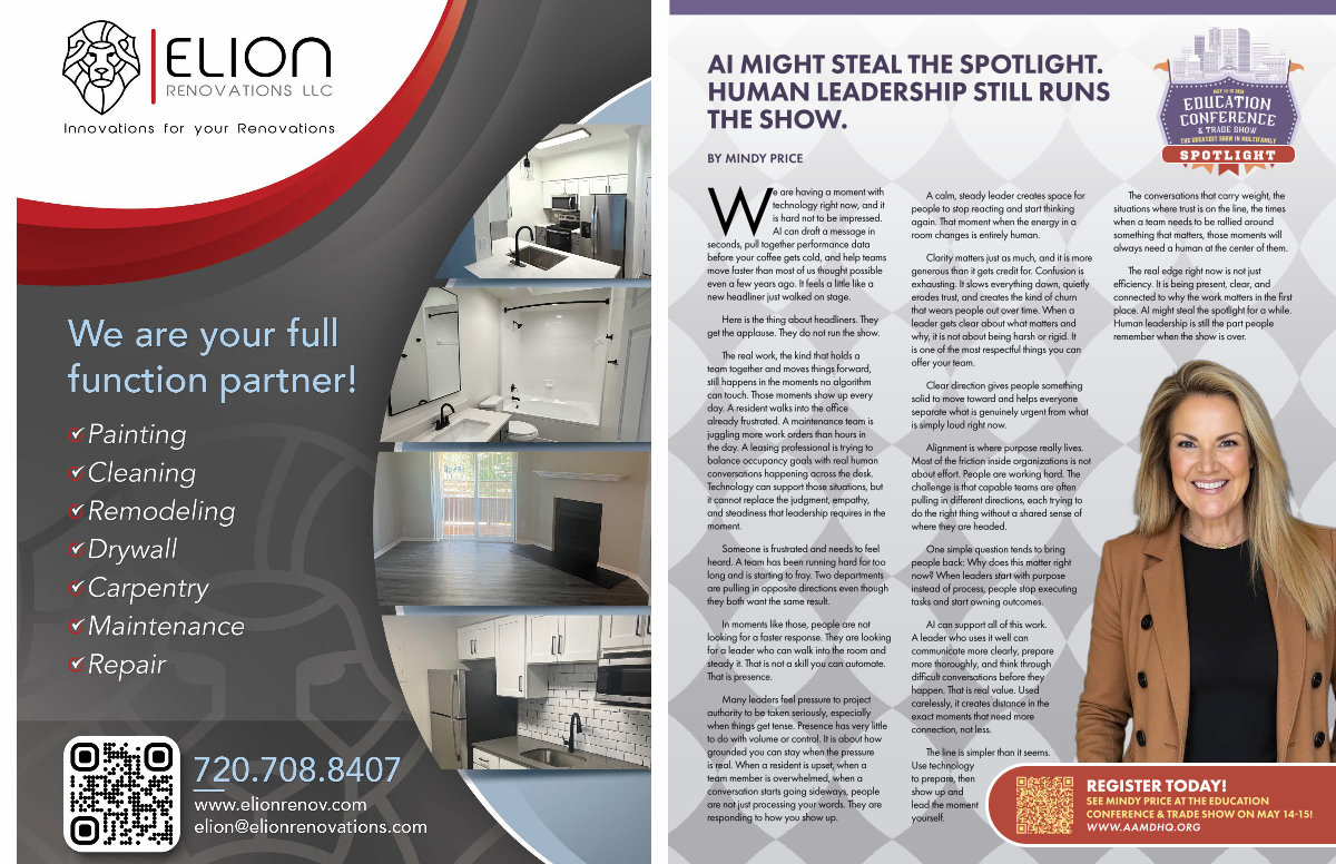 The real work, the kind that holds a team together and moves things forward, still happens in the moments no algorithm can touch. Those moments show up every day. A resident walks into the office already frustrated. A maintenance team is juggling more work orders than hours in the day. A leasing professional is trying to balance occupancy goals with real human conversations happening across the desk. Technology can support those situations, but it cannot replace the judgment, empathy, and steadiness that leadership requires in the moment.