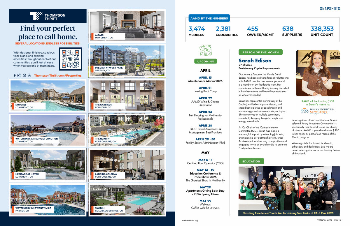 Our January Person of the Month, Sarah Edison, has been a driving force in volunteering with AAMD over the past several years and is a member of our leadership team. Her commitment to the multifamily industry is evident in both her actions and her willingness to step up wherever needed.