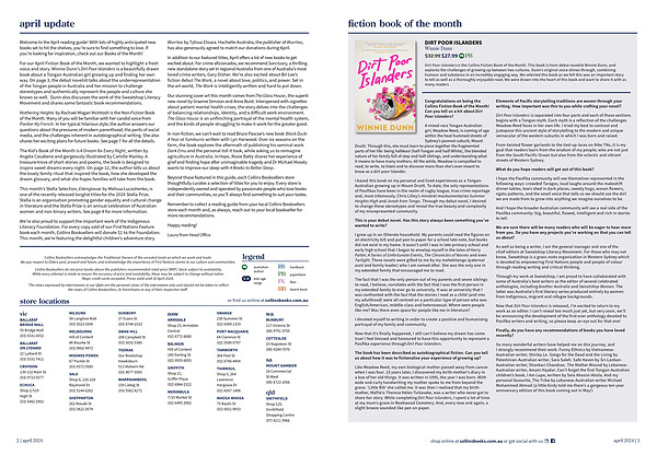 For our April Fiction Book of the Month , we wanted to highlight a fresh voice and story . Winnie Dunn ’ s Dirt Poor Islanders is a beautifully drawn book about a Tongan-Australian girl growing up and finding her own way . On page 3 , the debut novelist talks about the underrepresentation of the Tongan people in Australia and her mission to challenge stereotypes and authentically represent the people and culture she knows so well . Dunn also discusses the work of the Sweatshop Literacy Movement and shares some fantastic book recommendations .