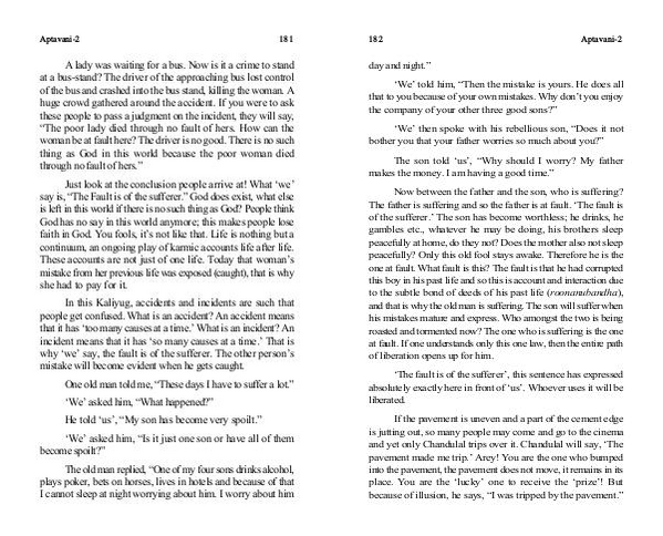 Just look at the conclusion people arrive at! What‘ we’ say is,“ The Fault is of the sufferer.” God does exist, what else is left in this world if there is no such thing as God? People think God has no say in this world anymore; this makes people lose faith in God. You fools, it’ s not like that. Life is nothing but a continuum, an ongoing play of karmic accounts life after life. These accounts are not just of one life. Today that woman’ s mistake from her previous life was exposed( caught), that is why she had to pay for it.