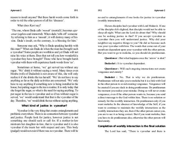 Vyavahar is the very thing that creates entanglements and problems everywhere. There is no connection between vyavahar and justice. People look for justice, however justice is not something one should seek or call for. If a mother-in-law mistreats her daughter-in-law, that is vyavahar and it is also vyavahar if she treats her with respect and care. This body( pudgal) would not exist if there was no vyavahar. There will be