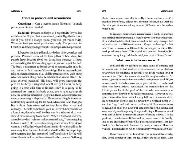 penance and kriya (rituals)?