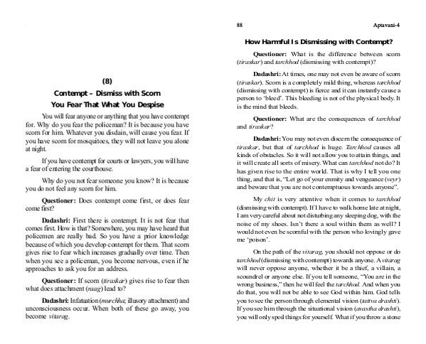Questioner: If scorn (tiraskar) gives rise to fear then