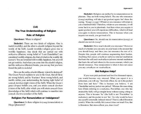 Dadashri: Religion can neither be in renunciation nor in