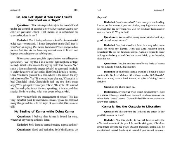 Dadashri: Do you ever wish to not bind karma? There is a science through which one does not bind any karma even when he is‘ doing’ karma! You will find liberation when you know that science.