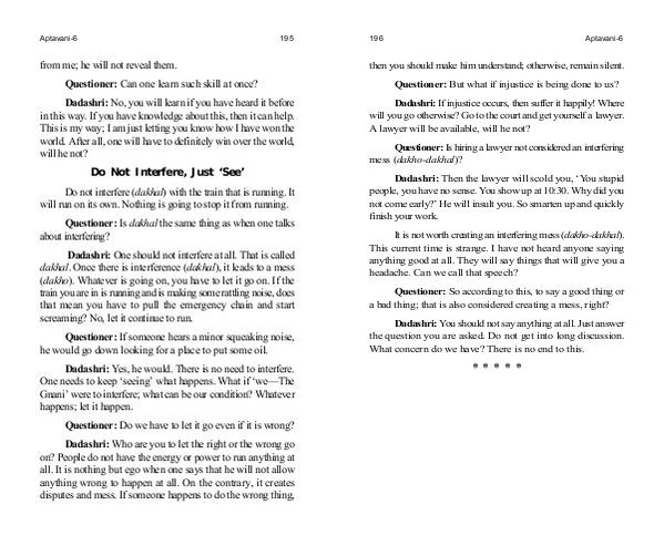 Dadashri: One should not interfere at all. That is called